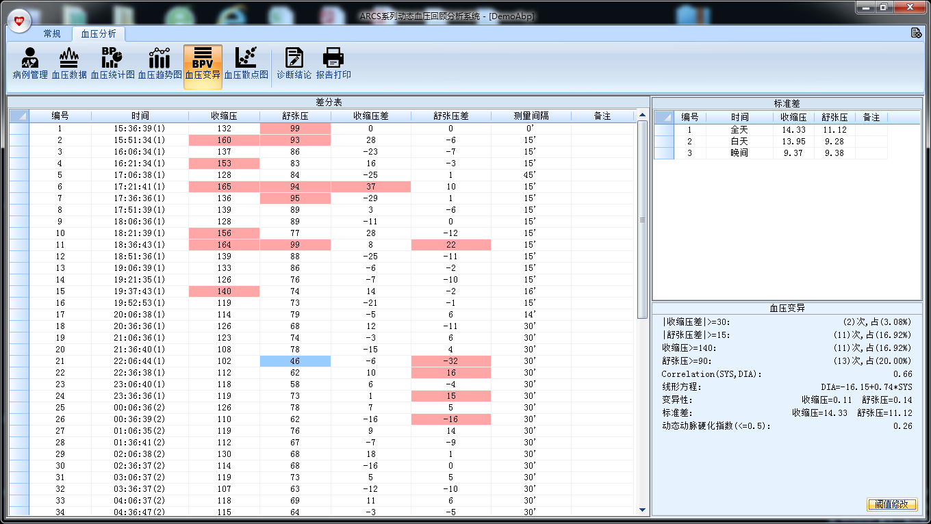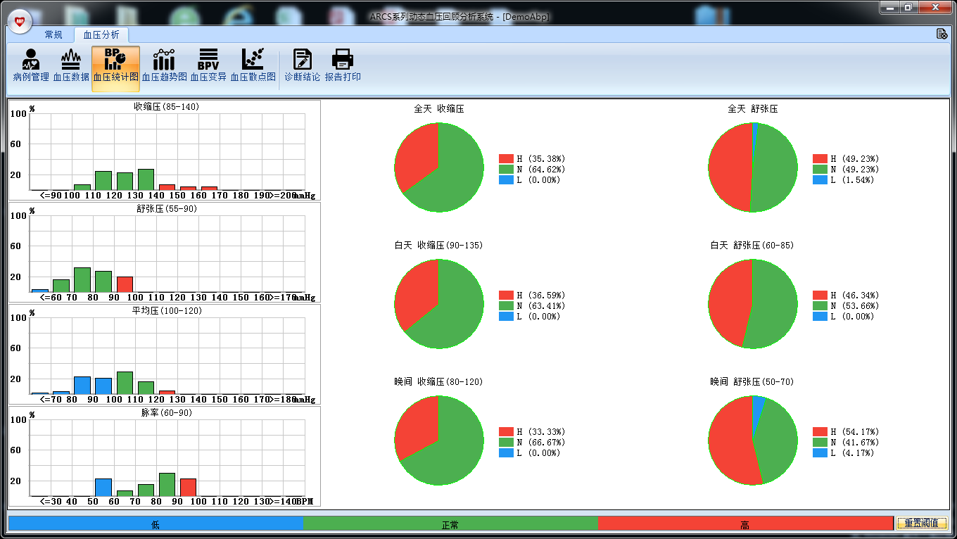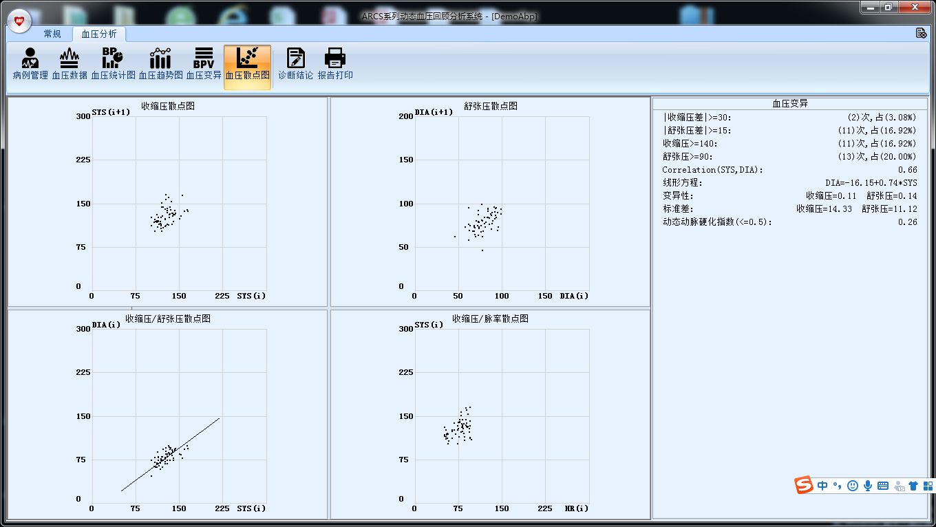 7. 有趨勢(shì)圖、圓餅圖、波形圖、差分表、標(biāo)準(zhǔn)差、分類直方圖和散點(diǎn)圖等匯總窗口,為用戶提供多種途徑和角度分析病例數(shù)據(jù)。